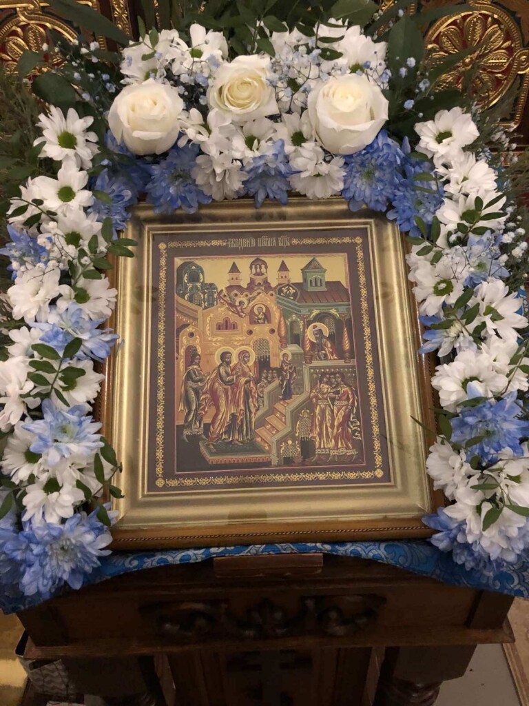 Когда Деве Марии исполнилось три года, благочестивые родители Ее приготовились исполнить свой обет. Они созвали родственников, пригласили сверстниц своей дочери, одели Ее в лучшие одежды и, провожаемые народом с пением духовных песней, повели Ее в храм иерусалимский для посвящения Богу. Ее подруги-сверстницы, как и Сама Мария, шли с зажженными свечами в руках.