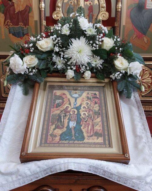 Крещение Господне именуется также Богоявлением, потому что при этом событии миру явлены были все три Лица Святой Троицы: Бог Сын крестился во Иордане, Бог Отец свидетельствовал о Нём голосом с небес: «Ты Сын Мой возлюбленный, в Котором Моё благоволение (Мк. 1, 11) и Бог Дух Святой сошёл с небес на Христа в виде Голубя».