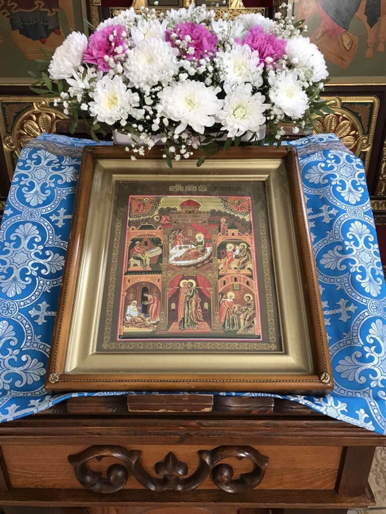Рождество Твое, Богородице Дево, / радость возвести всей вселенней: / из Тебе бо возсия Солнце Правды, Христос Бог наш, / и, разрушив клятву, даде благословение, / и, упразднив смерть, дарова нам живот вечный.